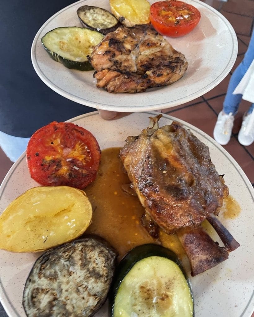 Carne de ternera, quesos curados, jamón te Teruel, pimientos de piquillo con patatas.